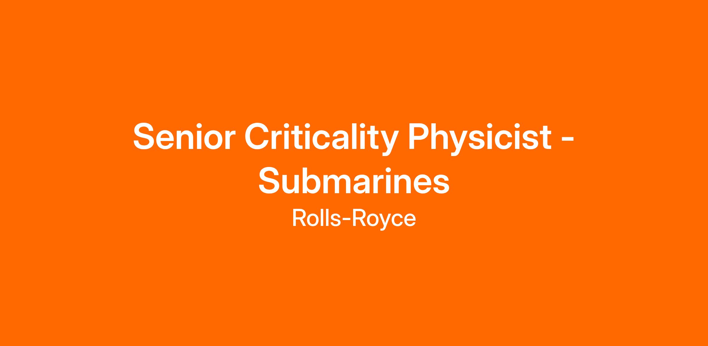 Job Title: Senior Criticality Physicist - Submarines